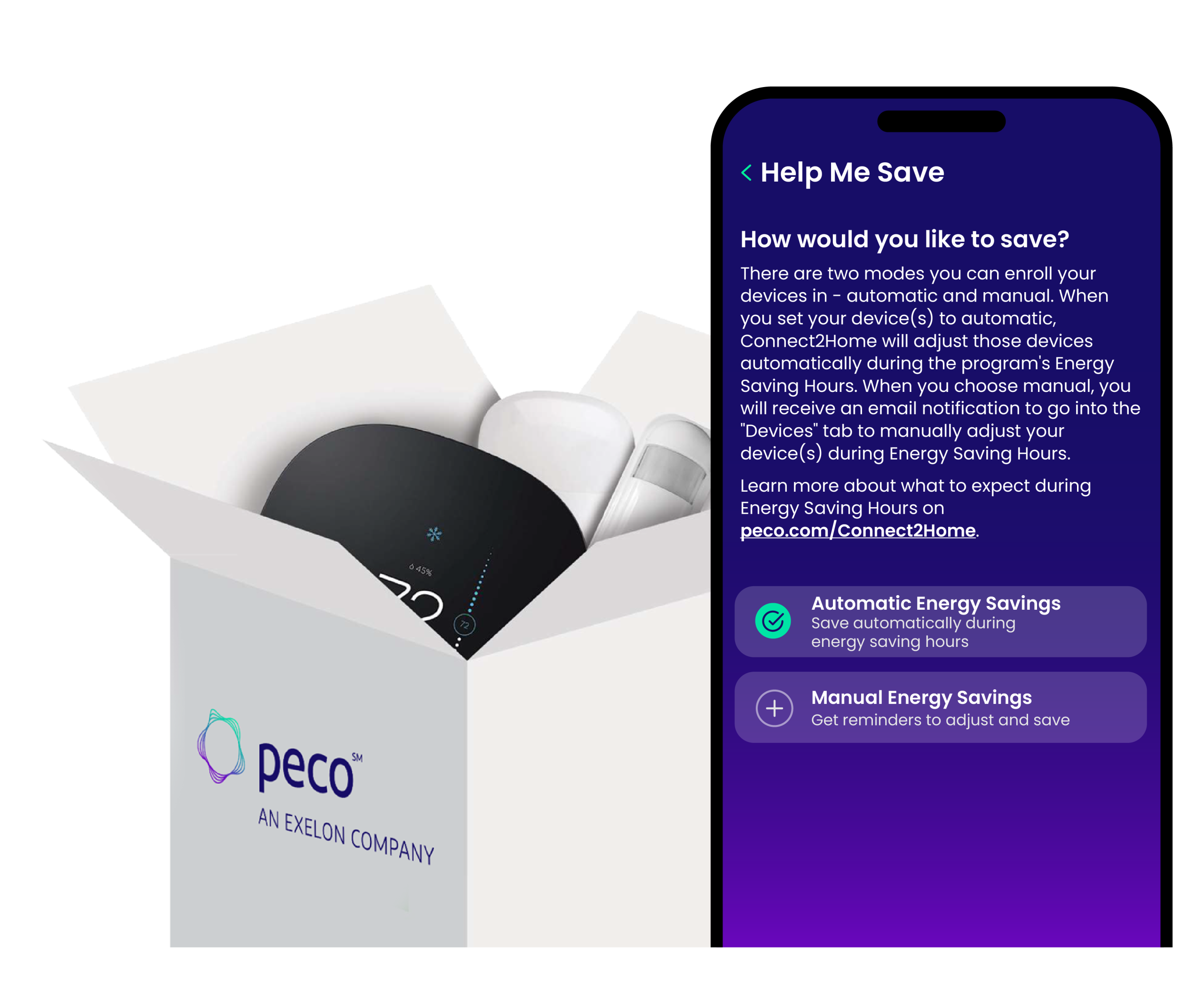 Selecting “Automatic Energy Savings” lets PECO adjust your devices during Energy Saving Hours to help reduce energy use.
